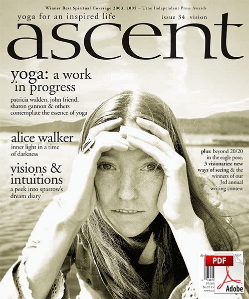 patricia walden, john friend, sharon gannon contemplate the essence of yoga; alice walker inner light in a time of darkness; a peek into sparrow’s dream diary; 3 visionaries: new ways of seeing & the winners of our writing contest